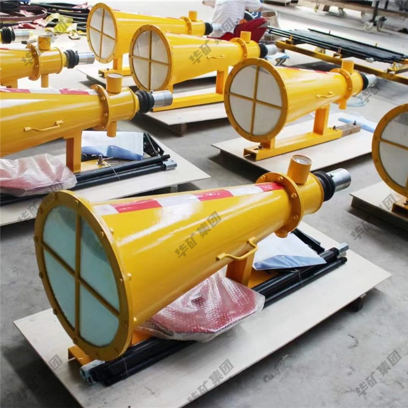 煤礦自動隔爆裝置是一款經(jīng)濟實用、安全效能突出的新型的隔抑爆產(chǎn)品,與隔爆水袋相比,其安全效能更加穩(wěn)定。 煤礦井下自動隔爆裝置安裝在有瓦斯、煤塵爆炸危險的巷道中,當發(fā)生瓦斯或煤塵爆炸時能自動噴出滅火物質(zhì),及時淬熄在其保護范圍內(nèi)的爆炸火焰,避免火焰繼續(xù)蔓延引發(fā)危害更大的二次爆炸,將瓦斯爆炸造成的危害降低到。煤礦井下自動隔爆裝置采用錨桿連接的方式固定在巷道頂板上方,并根據(jù)巷道情況選擇裝置的布置方式、安裝數(shù)量等。沖擊波接收器面向爆炸產(chǎn)生的沖擊波和火焰的蔓延方向。沖擊波先于火焰到達沖擊波接收器,并使觸發(fā)裝置動作,隔爆介質(zhì)噴出,形成高效能霧狀隔爆區(qū)域,該霧狀隔爆介質(zhì)可懸浮足夠時間以等待火焰到來并使之熄滅,起到阻止爆炸蔓延的作用。