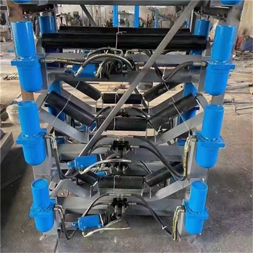 皮帶糾偏裝置能夠自動(dòng)檢測(cè)皮帶跑偏并予以調(diào)整,使皮帶始終運(yùn)行在設(shè)定的范圍之內(nèi)。 使用全自動(dòng)液壓糾偏裝置能夠消除皮帶機(jī)因安裝不準(zhǔn)、運(yùn)轉(zhuǎn)不靈、物料沖擊、負(fù)荷變化、皮 帶斷面間伸長(zhǎng)率不均等因素造成的皮帶跑偏。 液壓糾偏裝置不需電源、自動(dòng)調(diào)整、結(jié)構(gòu)簡(jiǎn)單、性能可靠、安裝方便??梢栽谌魏螑毫?環(huán)境下工作:不怕水、不怕粉塵、不怕物料撞擊,不損傷皮帶。液壓糾偏裝置是由檢驅(qū)輪、油泵、復(fù)合油缸、油管總成、固定機(jī)架構(gòu)成。當(dāng)皮帶運(yùn)行跑 偏時(shí),皮帶與檢驅(qū)輪接觸,檢驅(qū)輪帶動(dòng)油泵旋轉(zhuǎn),輸出壓力油控制驅(qū)動(dòng)油缸往復(fù)運(yùn)動(dòng),帶動(dòng) 調(diào)心托輥偏轉(zhuǎn),使調(diào)心托輥的線運(yùn)動(dòng)方向與皮帶的運(yùn)動(dòng)方向形成一個(gè)夾角,產(chǎn)生的摩擦力驅(qū) 動(dòng)皮帶,使皮帶始終在設(shè)定的范圍內(nèi)運(yùn)行,從而避免皮帶跑偏造成散料及皮帶與皮帶機(jī)機(jī)架 摩擦撕帶,達(dá)到保護(hù)皮帶機(jī)正常運(yùn)行之目的。