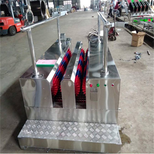 礦用洗靴機(jī)是井下人員升井后通過(guò)洗靴機(jī)時(shí),洗靴機(jī)全智能控水、電、動(dòng)力系統(tǒng)的運(yùn)行,可以一次性洗凈靴子底紋和靴面靴筒上的煤泥,保持靴子表面的清潔。礦用洗靴機(jī)是主要由洗靴系統(tǒng)、支撐部件、傳動(dòng)系統(tǒng)、電控系統(tǒng)、連接部件、人體行走扶手等構(gòu)成,安置在井口或副井井口洗靴池處。解決了員工升井后還要用手刷靴,費(fèi)時(shí)費(fèi)力還刷不干凈的問(wèn)題,減輕了員工勞動(dòng)強(qiáng)度,保持了井口衛(wèi)生,減輕了粉塵污染,又能節(jié)約用水,是礦井標(biāo)準(zhǔn)化建設(shè)的可靠產(chǎn)品。