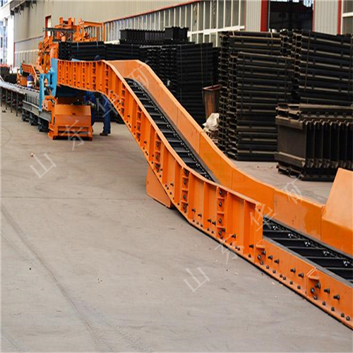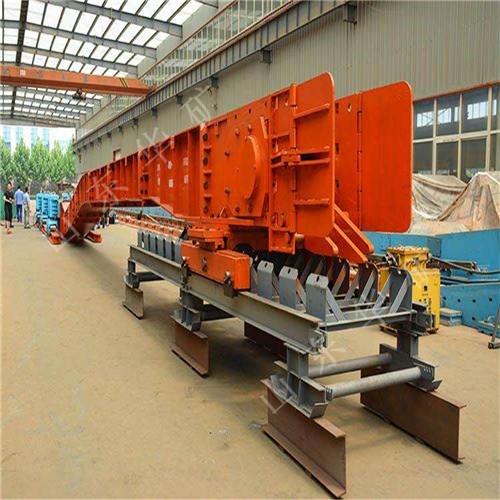 刮板轉(zhuǎn)載機是一種可以縱向整體移動的重型刮板輸送機,其長度較小,便于隨著采煤工作面的推進和帶式輸送機的收縮而整體移動。轉(zhuǎn)載機安裝在采煤工作面運輸巷中,與可伸縮帶式輸送機配套使用,同工作面刮板輸送機銜接配合順槽用刮板轉(zhuǎn)載機有軋制中部槽組裝式和整體組焊箱式結(jié)構(gòu)兩種,主要用于綜合機械化采煤,在長壁工作面刮板輸送機和順槽可伸縮皮帶機之間起轉(zhuǎn)載輸送煤炭的作用。使用轉(zhuǎn)載機后,可以避免順槽可伸縮皮帶機機尾的頻繁移動,從而保證工作面生產(chǎn)的順利進行。刮板轉(zhuǎn)載機主要應用于高產(chǎn)、高效綜合機械化工作面順槽轉(zhuǎn)載輸送煤炭。它是由中部槽、鏈條、刮板及牽引系統(tǒng)組成。