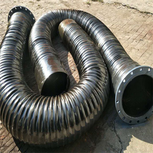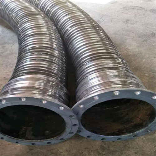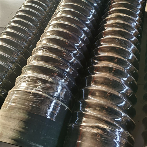 橡膠伸縮軟管由耐老化內(nèi)膠層,織物增強(qiáng)層,中間螺旋鋼絲骨架層及耐老化外膠層組成
