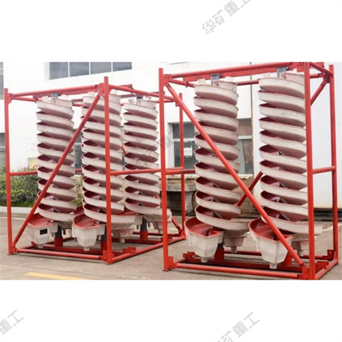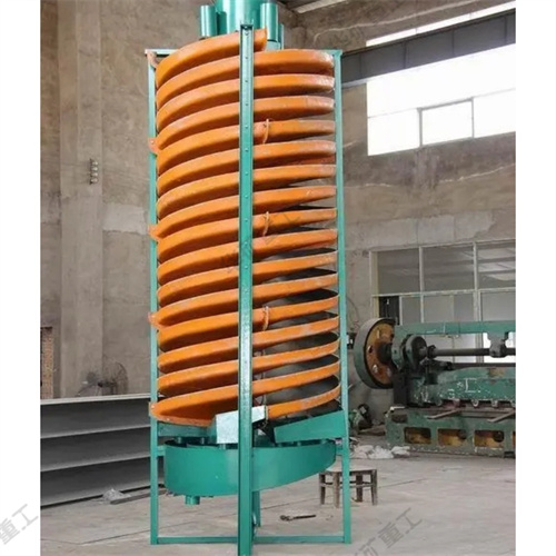 螺旋溜槽設(shè)備的主體部件,由玻璃鋼制成的螺旋片用螺栓連接而成。在螺旋槽的內(nèi)表面上涂以耐磨襯里,通常是聚氨脂耐磨膠或摻以人造金鋼砂的環(huán)氧樹(shù)脂。在螺旋溜槽的上部有分礦器和給礦槽,下部有產(chǎn)物截取器和接礦槽。整個(gè)設(shè)備用鋼框垂直地架起。螺旋溜槽的工作特點(diǎn)是在槽的末端分別截取精、中、尾礦,且在分選過(guò)程中不加沖洗水。
