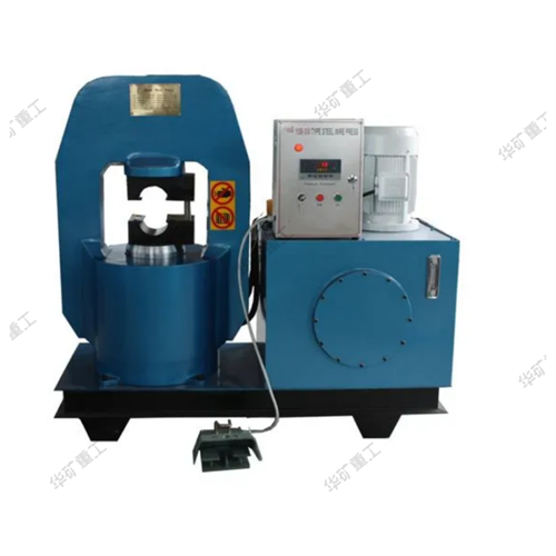 鋼絲繩壓套機由主體框架部分、液壓部分、電器部分、底座等四部分組成。國內(nèi)外目前主體框架結(jié)構(gòu)為:整體鑄鋼花藍式、四梁立柱式、預(yù)應(yīng)力鋼絲纏繞式、和"c"型開口式等形式。