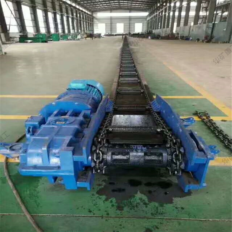 將敞開的溜槽,作為煤炭、矸石或物料等的承受件,將刮板固定在鏈條上(組成刮板鏈),作為牽引構(gòu)件。當機頭傳動部啟動后,帶動機頭軸上的鏈輪旋轉(zhuǎn),使刮板鏈循環(huán)運行帶動物料沿著溜槽移動,直至到機頭部卸載。刮板鏈繞過鏈輪作無級閉合循環(huán)運行,完成物料的輸送。