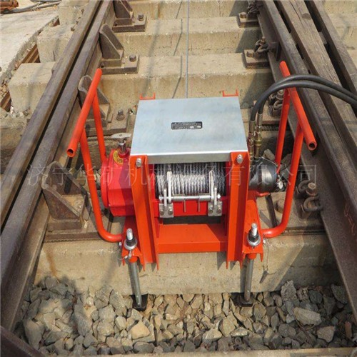 6、液壓橫向牽引絞車,抬起道岔后插入滑軌,采用液壓馬達(dá)卷動(dòng)鋼絲繩,拖動(dòng)道岔橫向移動(dòng);